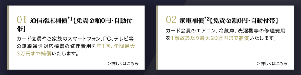 ガジェット好きとして見逃せないのが、付帯保険の「通信端末修理費用保険」と「家電補償」です。